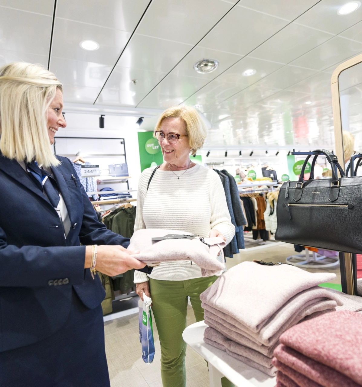 Om bord har vi flere ulike butikkonsepter, som blant annet parfyme, fashionshop og taxfree. Som butikkekspeditør jobber du i et miljø med høyt tempo, spennende utfordringer og mye kundekontakt. Vi har tatt en prat med Kairi, en av våre butikkekspeditører, om hvordan det er å jobbe om bord.