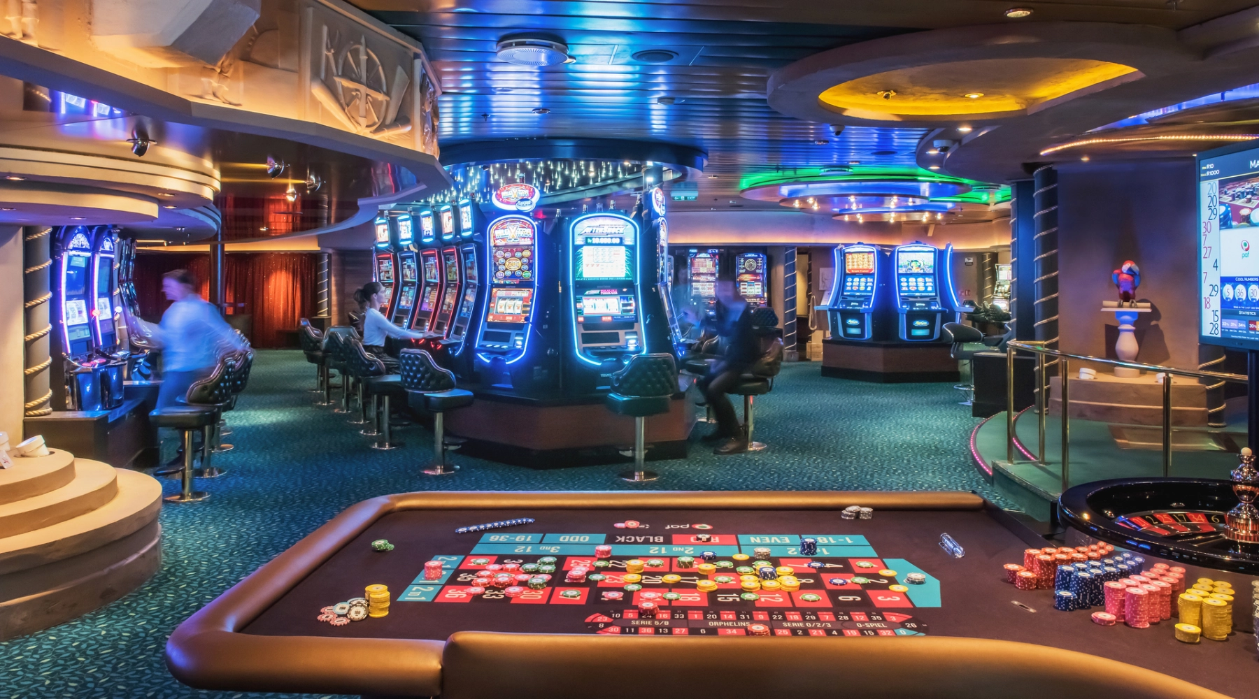 Opplev ekte Las Vegas-stemning om bord på Color Fantasy og Color Magic. Her venter et fullverdig casino med spilleautomater, Blackjack og Roulette – og på Color Magic kan du også prøve nyheten Color Poker. Lyd, lys og puls gir deg følelsen av å være i en helt annen verden.