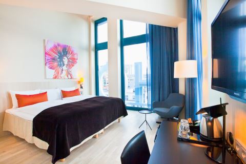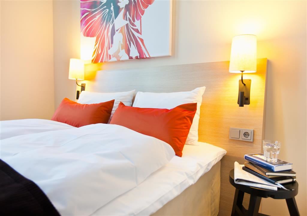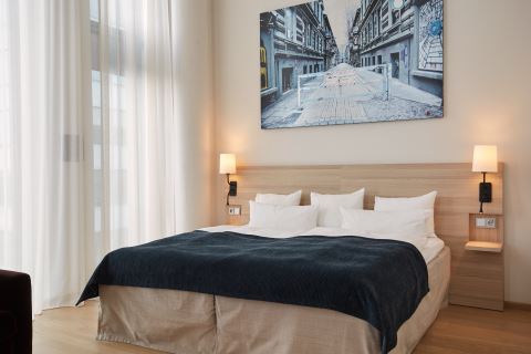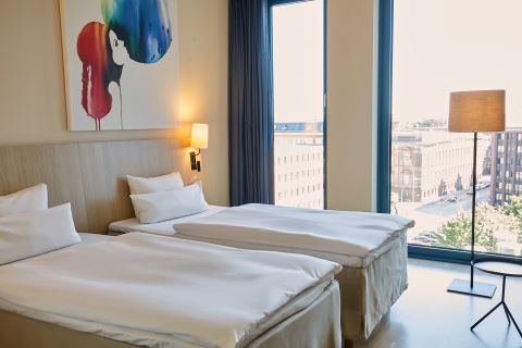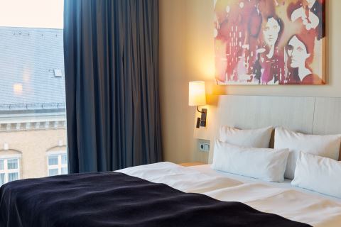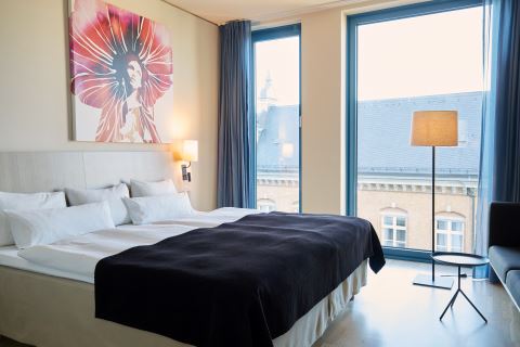 Rom på 24–35 m2 for opp til 2 personer. Rommene er lyse og befinner seg i de øvre etasjene på hotellet med utsikt over byen, hotellatriet eller gaten.